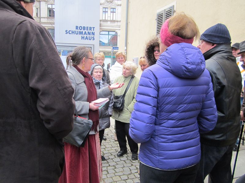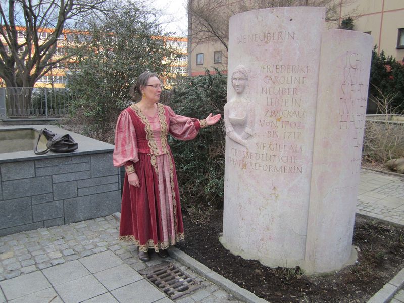 Unter der Führung von Frau Dr.Ute Haese -im historischen Gewand- konnten ca. 20 Mitglieder und Freunde des Fördervereins durch Zwickau wandeln und den Spuren von Caroline Neuber folgen.