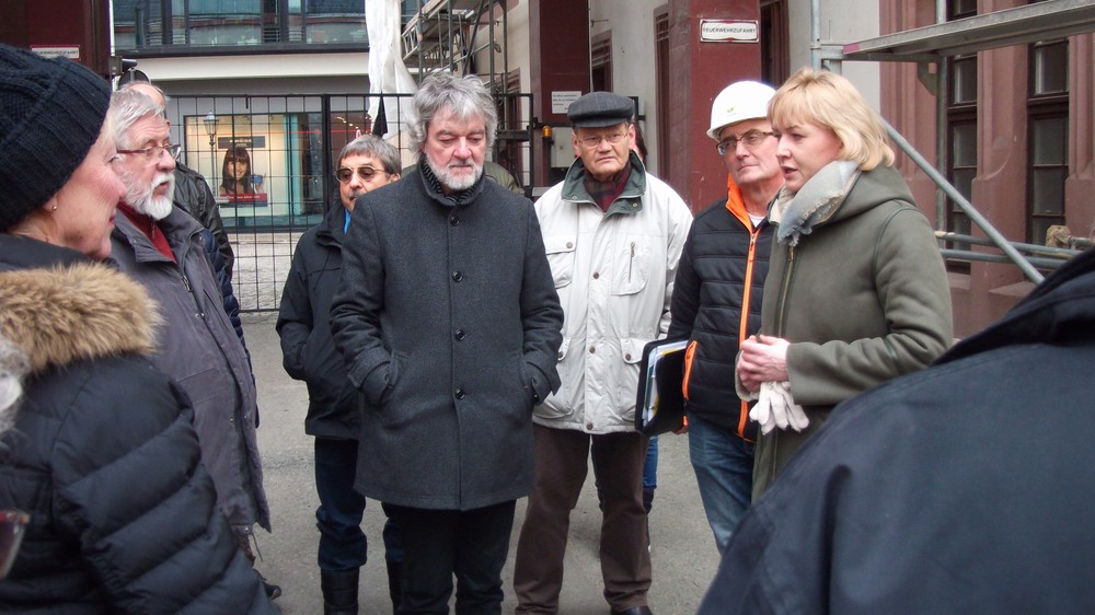 Auf großes Interesse ist die Baustellenbesichtigung des Gewandhauses bei unseren Mitgliedern gestoßen. Pünktlich um 14:00 Uhr begrüßte Henry Klüglich im Innenhof des Theaters die zahlreich erschienenen Teilnehmer. Neben der Baubürgermeisterin Frau Köhler, war auch Herr Hertrampf, Leiter des gleichnamigen Bauplanungs- und Ingenieurbüros, anwesend. Von beiden Verantwortlichen konnten wir viel Interessantes zum Baufortschritt erfahren.