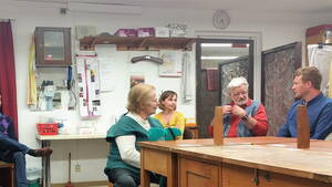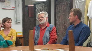 Ein Blick hinter die Kulissen gelang den Teilnehmern des April-Stammtisches unseres Fördervereins. Der Produktionsleiter Sebastian Blei und die Chefin des Malsaals Anja Schneider-Keipert nahmen uns mit auf eine Reise in ihr Theaterleben (Das Werkstattleben!) und beantworteten geduldig alle Fragen.