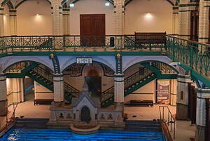 Der mit 89 (!) Jahren älteste Schwimmmeister Deutschlands, Herr Langner, führte uns in zwei kleinen Gruppen durch "sein Reich": das Johannisbad in Zwickau. Vielen Zwickauern ist die ursprünglich von Dr. Samuel Schlobig 1869 eröffnete Bade- und Heilanstalt, die nach einem Erweiterungsbau 1904 als Johannisbad eingeweiht wurde, aus der Kinderzeit bekannt. In der Halle haben viele Generationen von Zwickauer Kindern das Schwimmen gelernt. Kaum zu glauben, dass im Jahr 1991 der Komplex wegen Baufälligkeit geschlossen werden musste. Nach der umfangreichen Sanierung strahlt der Bau nun wieder in altem Glanz, die im Jugendstil gehaltene Innenausstattung mit einem Hauch orientalischer Badekultur bringt die Gäste aus ganz Deutschland und darüber hinaus seither zum Schwärmen. Auch als Filmkulisse für Hollywood hat das Gebäude schon gedient!