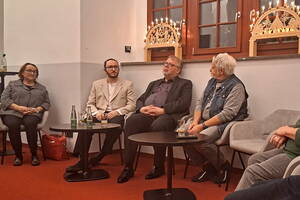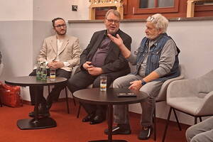 Warum kommt ein Tscheche nach Dresden zum Musikstudium? Und wie dann nach Zwickau? Warum konnte Herr Köhler nicht Akkordeon spielen lernen? Beide Gäste fühlen sich offensichtlich wohl hier in Zwickau und betonten, dass so ein Orchester ein „in sich funktionierendes Ökosystem“ ist und nur „im Rudel“ funktionieren kann. Ganz besonders hervorgehoben wurde auch die Arbeit mit den jungen Nachwuchs-Musikern. Das Projekt Philkon unseres Fördervereins ermöglicht seit 10 Jahren, junge Meisterschüler der Konservatorien in Zwickau und Plauen mit in Konzerte einzubeziehen. Das erfordert von beiden Seiten sehr viel Engagement, Zeit, Kraft und Nerven und die beiden Gäste zollten den Schülern, die diesen Aufwand betreiben, ihre Hochachtung.