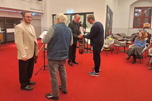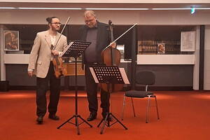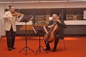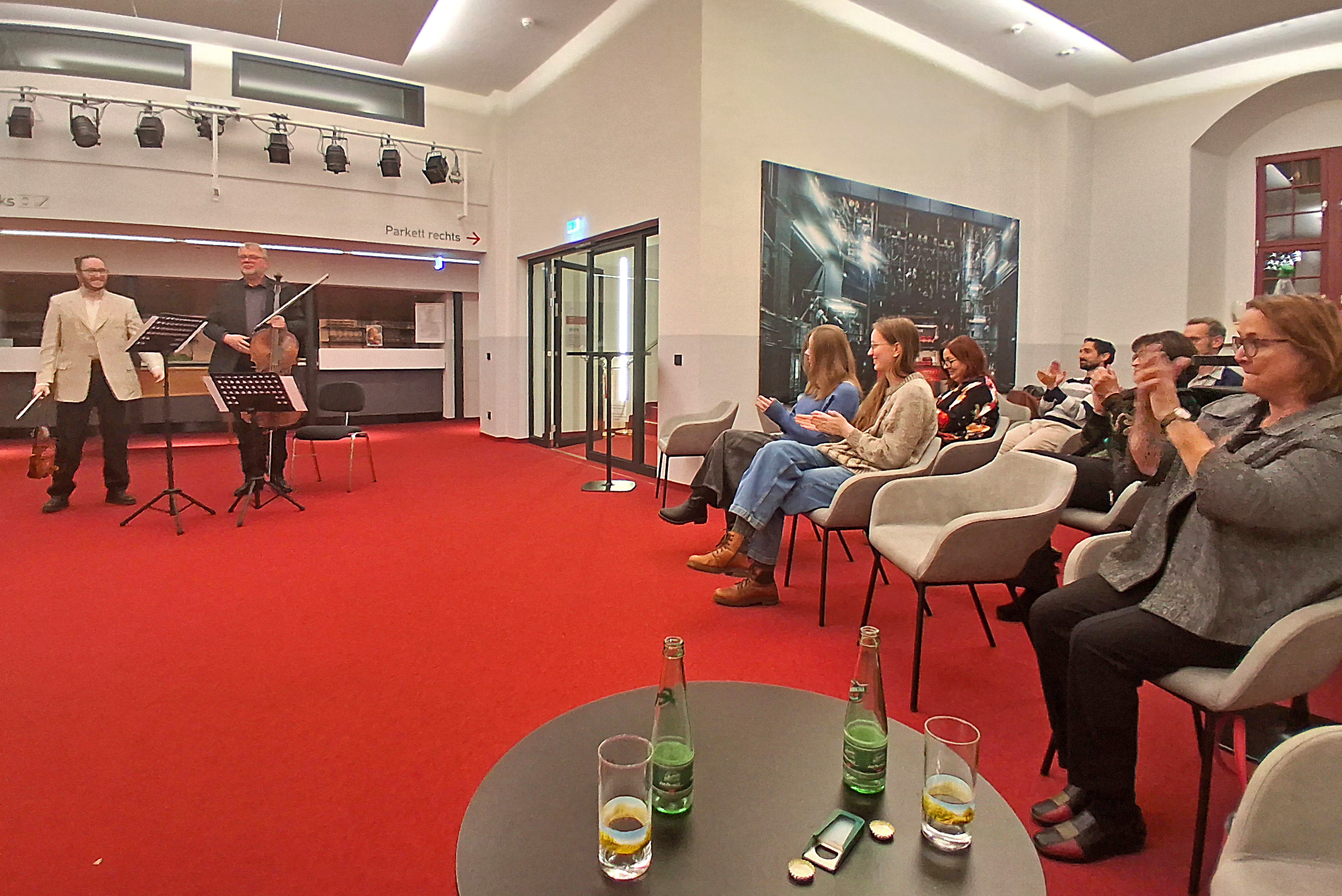 Nicolaus Köhler hatte sein Cello mit und der 1. Konzertmeister, Josef Vlcek, die Geige. Und beide begannen ihre Vorstellung standesgemäß mit einem musikalischen Beitrag. Von unserem Vereinsvorsitzenden kam dann die etwas provokatorische Frage: Was macht eigentlich ein Konzertmusiker den ganzen Tag, kommt er nur zur Vorstellung, spielt zwei Stunden und das war´s?