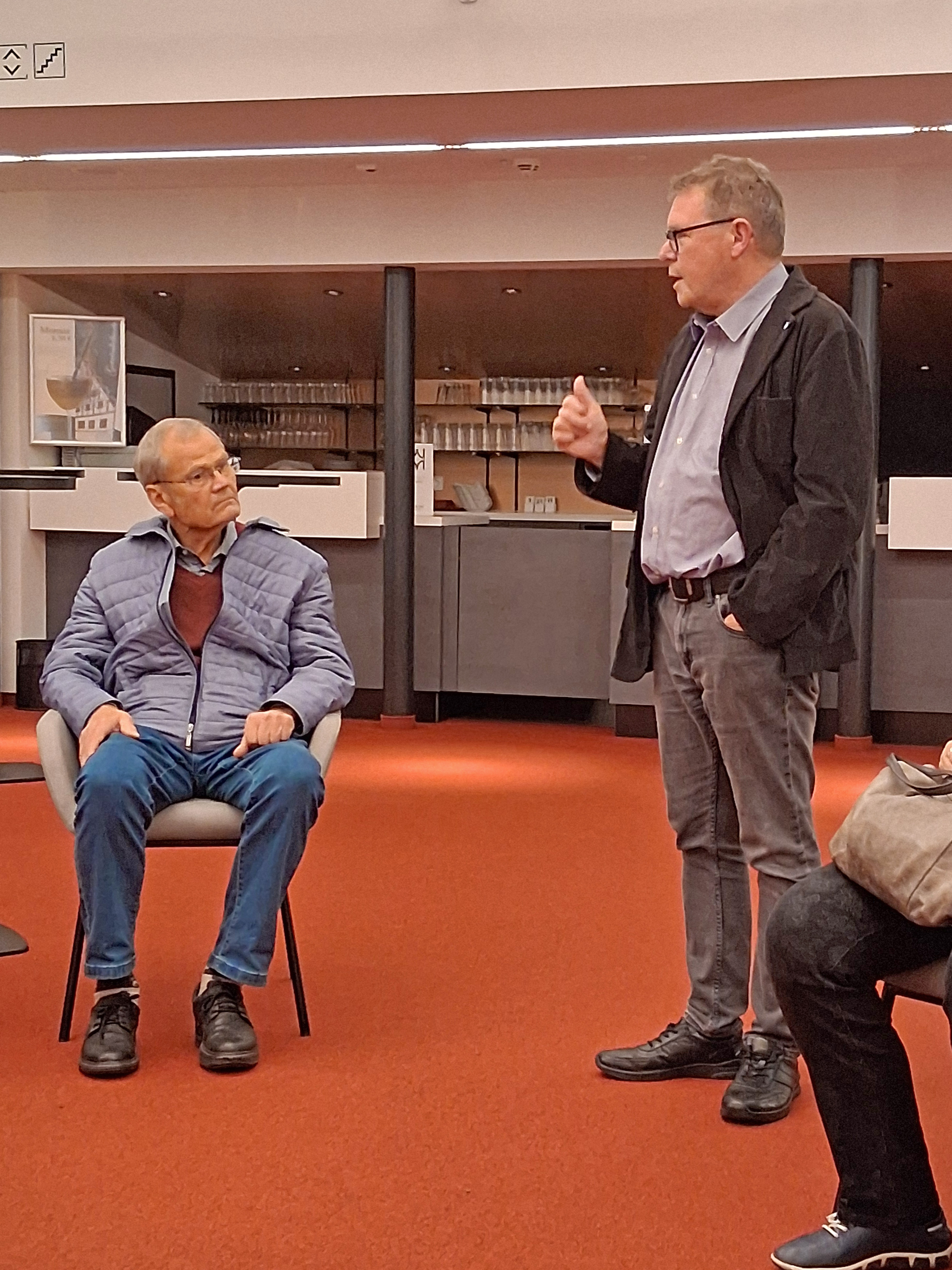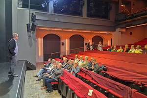 Nach einem kurzen Rückblick auf die vor Kurzem beendete Sanierung des Hauses, die er als Verantwortlicher des Theaters begleitet hatte, berichtete Herr Gahs von seinem künstlerischen Werdegang. Der führte ihn über Karl-Marx-Stadt, Dresden, Bregenz im Jahre 1994 an unser Theater. Eigentlich wollte er Schauspieler werden, heute leitet er als Technischer Direktor die mit ca. 100 Mitarbeitern größte Abteilung des fusionierten Theaters. Natürlich war auch die derzeitige finanzielle Situation an den Häusern Thema – und auch hier ist ein starker Förderverein unabdingbar.