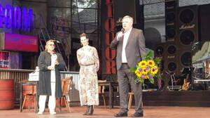 Unser Theaterförderverein konnte auch in diesem Jahr wieder den Theaterliebling der zu Ende gehenden Spielzeit 2021/22 küren. Bereits zum 9. Mal konnte die Sparte "Ballett" diesen Preis gewinnen. Nach Publikumsabstimmung sowohl online auf der Webseite unseres Vereins als auch durch Abgabe der ausgefüllten Stimmkarten wurde die scheidende Ballettdirektorin Annett Göhre zum Abschluss ihres Engagements am Theater Plauen-Zwickau zum Theaterliebling gewählt. Die festliche Verleihung dieses reinen Publikumspreises findet regelmäßig zum Theaterball statt. Da in der zurückliegenden Spielzeit kein Ball stattfinden konnte, wurde als würdiger Rahmen die Freilichtbühne am Schwanenteich in Zwickau gefunden. Die passenden Worte für ihre herausragende Leistung fand der Generalintendant Roland May. Überreicht wurde die für diesen Anlass gestaltete Statue, hergestellt von der Lukaswerkstatt in Planitz, bei bester Stimmung am Freitag, dem 1. Juli, vor der Vorstellung von Rock of Ages durch Frau Ronny Pühn, 1. Stellvertreterin des Vereinsvorstandes.