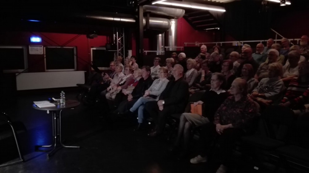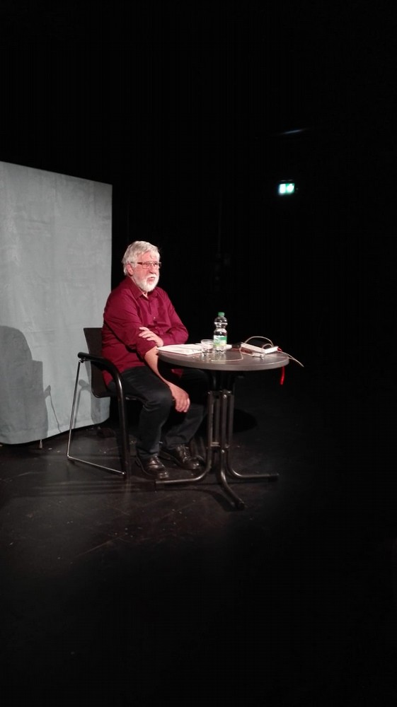 EXTRA aus Frankfurt am Main angereist war ein berühmter Literaturkritiker, der in seiner Laudatio - mehr oder weniger wohlwollend - auf die Lesung von Heinrich Schulze einstimmte. Er machte neugierig und alle Zuhörer im gut gefüllten Malsaal warteten gespannt auf die Lesung. (dass sich unser "Puppenschulze" hinter dem Fachmann verborgen hatte, haben natürlich alle gleich geahnt) "Von des Alters hohem Sitz" herunter gab Herr Schulze Einblicke auf seine ganz persönliche Sicht auf verschiedene Bereiche des Lebens. Oft verschmitzt, manchmal bissig, hintergründig oder "nur" als Beobachter.