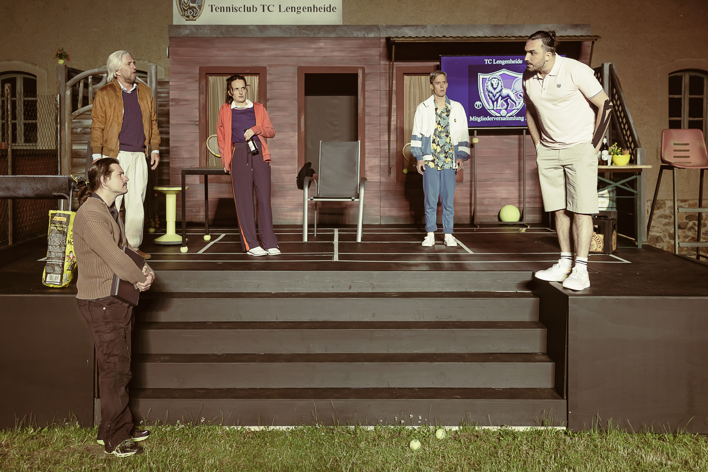 Aber dann ging es direkt hinein in die Vereinssitzung eines Tennisclubs. Eigentlich war schon alles gesagt, es ging „nur noch“ um einen neuen Grill fürs Sommerfest. Eine schwungvolle Komödie nahm ihren Lauf – wobei: Manchmal wussten wir nicht so genau, ob man da lachen kann bei der hitzig geführten Diskussion über Bräuche, Befindlichkeiten, Rassismus. Absolut sehenswert und wirklich sehr schade, dass nicht mehr unserer Vereinsmitglieder dabei waren.