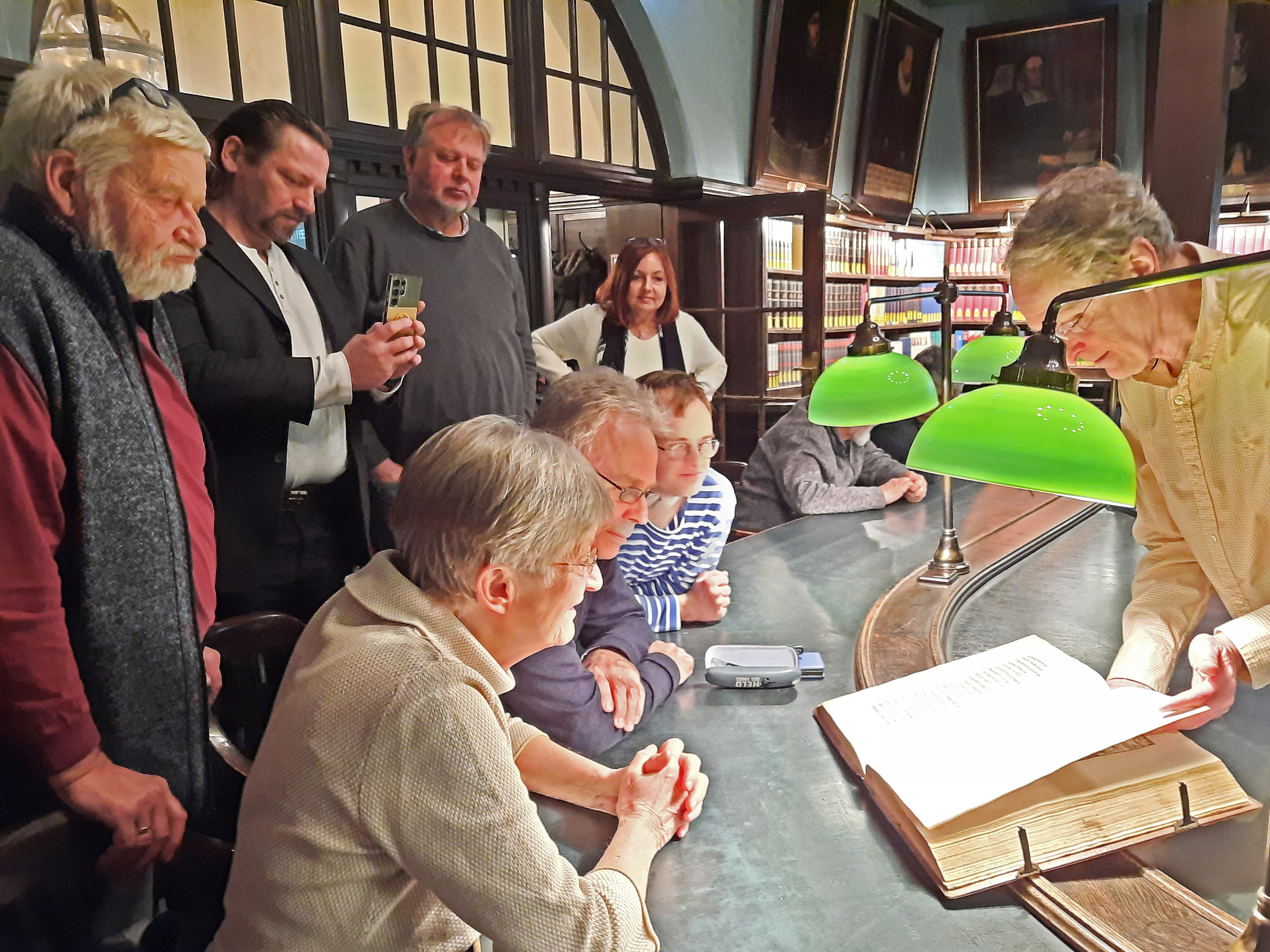 Ein Besuch in unserer altehrwürdigen Ratsschulbibliothek ist immer wieder ein Erlebnis! Unter dem Titel „Die Anfänge des Buchdrucks in Zwickau und die Schulordnung von 1523“ führte uns Dr. Lutz Mahnke, der Leiter der Bibliothek, in diesem Jahr zurück in die Zeit der Grundsteinlegung unseres Gewandhauses. Für mich als Zwickauerin ist es immer wieder spannend zu hören, welche Neuerungen in unserer Stadt ihren Anfang nahmen. So bezeichnete z. B. Martin Luther die Schulen dieser Zeit als „Eselsställe und Teufelsschulen“, Zwickau jedoch gilt als „edles Kleinod“ in den 1530er Jahren. Hier waren in der Lateinschule 8 Lehrer angestellt, in anderen Städten Sachsens kaum 1–2. Die Griechische Schule unter Leitung von G. Agricola galt als „Schleifmühle des Verstandes und der Sitten“.