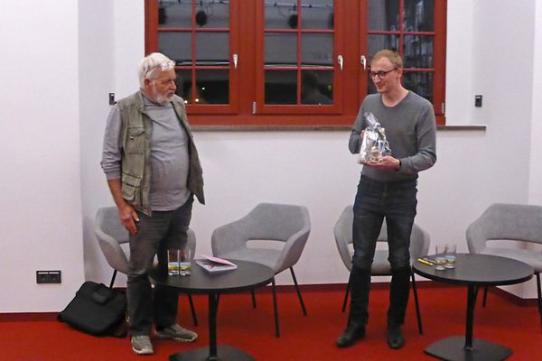 Nach einem kurzen Abriss über seinen noch kurzen künstlerischen Werdegang (immerhin ist Herr Völkner erst 30 Jahre alt und damit ganz dicht an der Zielgruppe von JUPZ!) und zu seinem Entschluss, aus den festen Gleisen auszubrechen und mehr Verantwortung auch für andere zu übernehmen, kam es zu einem regen Gedankenaustausch mit unseren Vereinsmitgliedern.