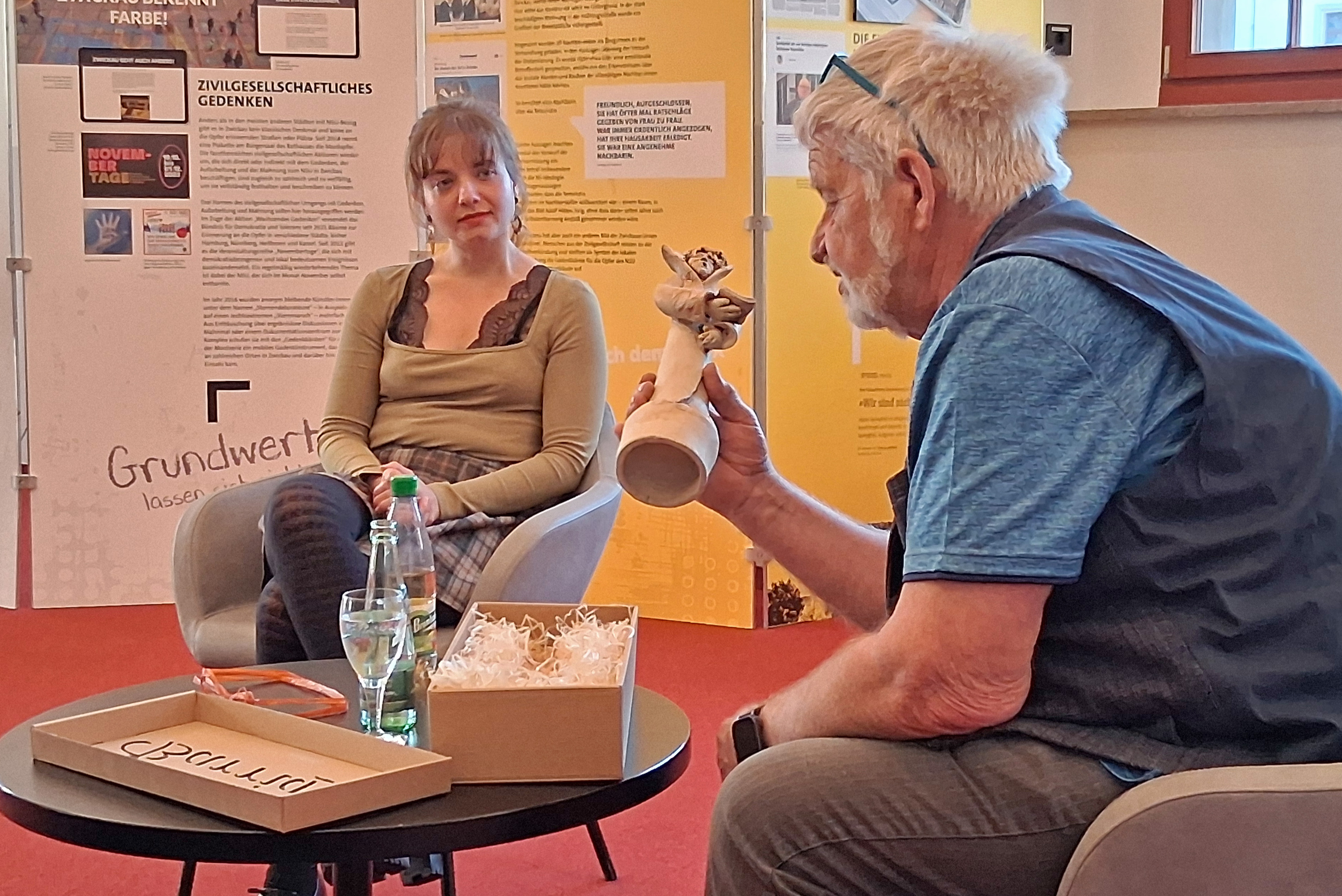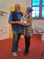 Unser Vorsitzender, Herr Klüglich, erklärte allen Anwesenden noch einmal, wie und wo die Preise für die Publikumslieblinge entstehen. Sie werden von einem Künstler der Lukaswerkstatt liebevoll gestaltet, jeder Preis ist ein Unikat. Und Frau Birgmeier erklärte nochmal, wie sehr sie die Auszeichnung als Theaterliebling überrascht und gefreut hat.
