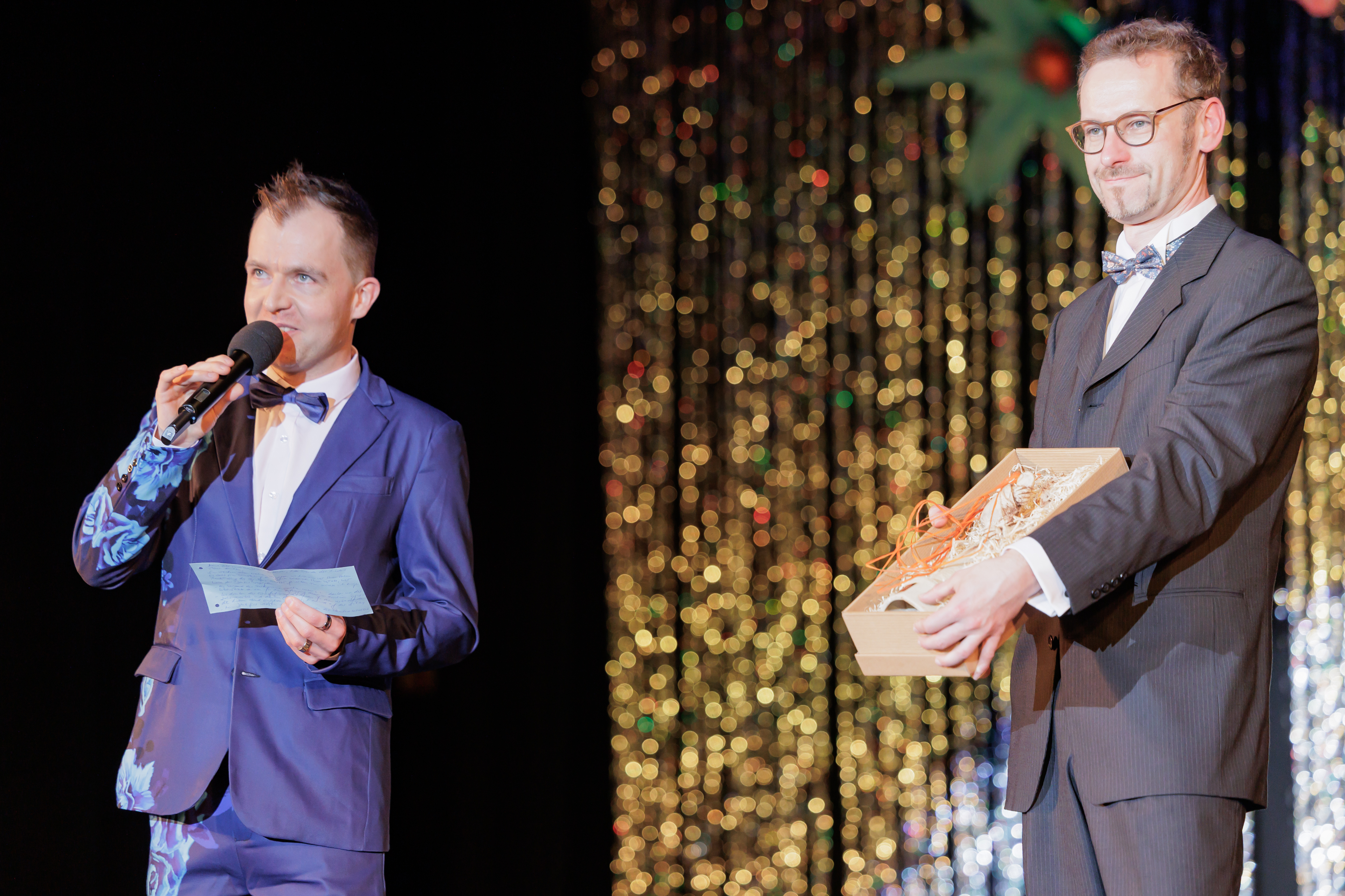 Der Ball war wieder ausgebucht – viele erwartungsfrohe Zuschauer warteten gespannt auf den Beginn. Das Programm führte von „California Dreamin“ über die Beatles, „My Fair Lady“, Tschaikowskys Blumenwalzer, „Das Dschungelbuch“ bis zum gemeinsamen Abschlusssong von den Beatles: „All you need is Love“. Zum Ende des Galaprogramms waren dann Andreas Schlesiger und Knud Müller vom Vorstand unseres Fördervereins mit auf der Bühne. Sie überreichten der völlig überraschten Preisträgerin des diesjährigen Publikumspreises, der Sängerin Elisabeth Birgmeier, den „Oskar“ für die Spielzeit 2024/2025 und einen wunderschönen Blumenstrauß. In seiner Laudatio fand der Operndirektor, Herr Kupich, sehr warme Worte für seine Kollegin. Wir hoffen mit ihm, dass sie möglichst noch lange an unserem Theater bleibt.