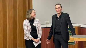 Dann übernahm – nun auch schon fast traditionell - Anne Zeuner und führte durch das Programm „Der Weihnachtsbaum“. Unterstützt von Matthias Spindler am Klavier, brachte Andrey Valiguras verschiedene Weihnachtslieder zu Gehör. Und auf die Frage, warum er ausgerechnet diese Lieder ausgewählt hat, die man sonst nicht mit einer Bassstimme in Verbindung bringt, meinte er: „Weil sie schön sind“. Recht hatte er.
