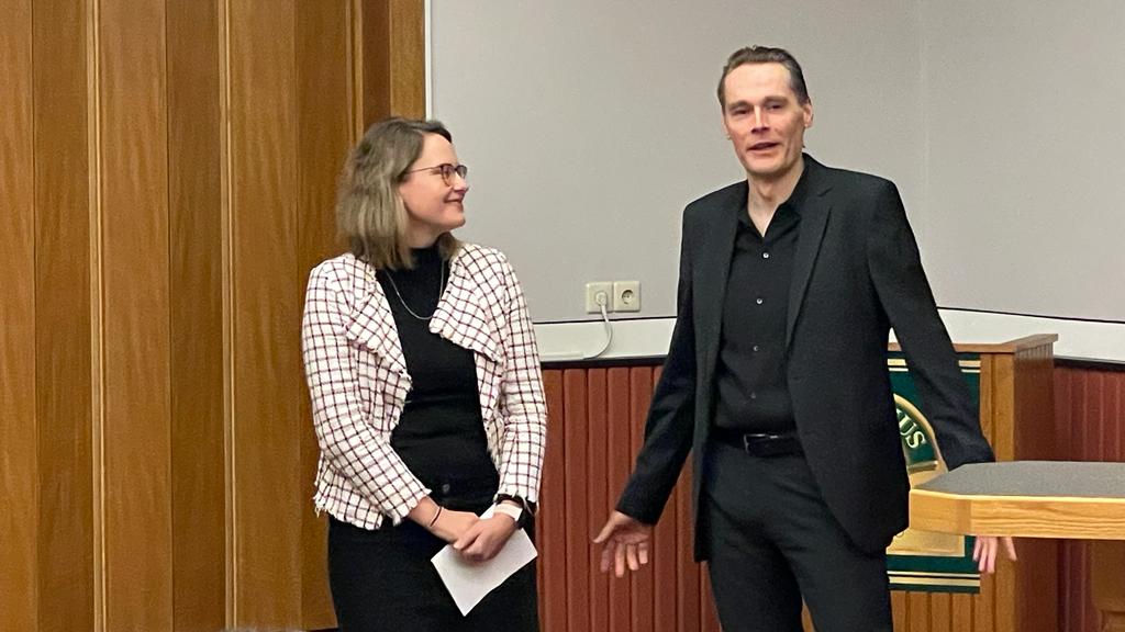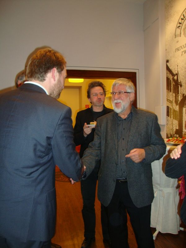 Mit einem kleinen Präsent und herzlichen Worten bedankte sich Herr Klüglich bei den Künstlern. Danach wurde das Buffet eröffnet. Vermutlich lag es an der Erkältungssaison, dass diesmal nicht so viele Vereinsmitglieder kommen konnten und die anderen mindestens ein Brötchen mehr essen mussten, als sie das vielleicht ursprünglich wollten. Besonders gefreut haben wir uns, dass die Künstler auch in diesem Jahr unserer Einladung folgten und noch einige Zeit mit uns verbrachten.