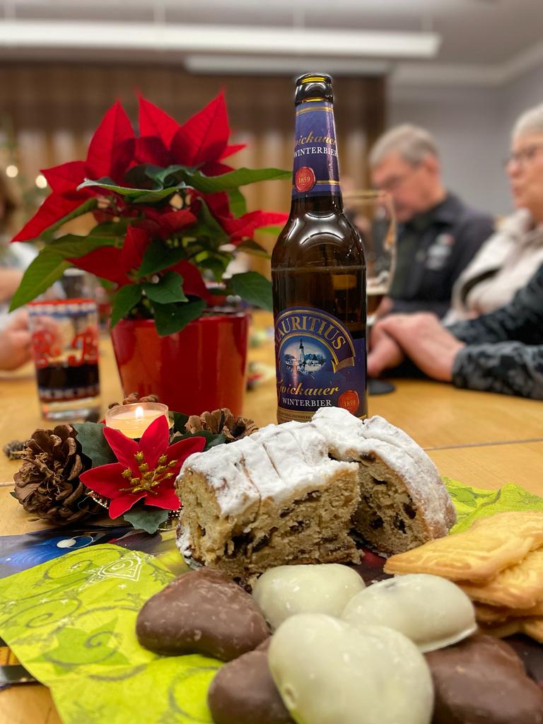 Es ist längst zur Tradition geworden, dass wir uns in der Weihnachtszeit zu unserem Stammtisch bei entspannter Atmosphäre im Schalander der Mauritius-Brauerei Zwickau zusammenfinden. Und auch in diesem Jahr machte sich schon beim Eintritt in den Raum Weihnachtsstimmung breit. Die Tische waren festlich geschmückt, es gab viele Kerzen, einige Knabbereien und auch einen Weihnachtsbaum im Lichterglanz vieler Kerzen.