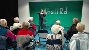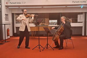 Nicolaus Köhler hatte sein Cello mit und der 1. Konzertmeister, Josef Vlcek, die Geige. Und beide begannen ihre Vorstellung standesgemäß mit einem musikalischen Beitrag. Von unserem Vereinsvorsitzenden kam dann die etwas provokatorische Frage: Was macht eigentlich ein Konzertmusiker den ganzen Tag, kommt er nur zur Vorstellung, spielt zwei Stunden und das war´s?